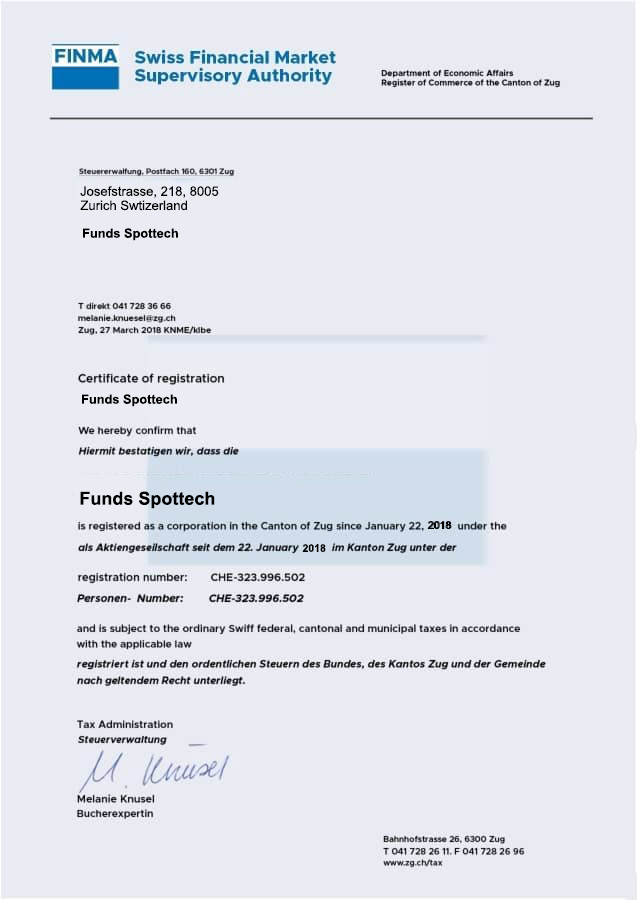The website is incorporated Funds Spottech Company Limited. with registration No. CHE-323.996.502 (click to verify); Address: Vistra Corporate Services Centre, Wickhams Cay Ii, Road Town, Tortola, Virgin Islands, British, VG1110.